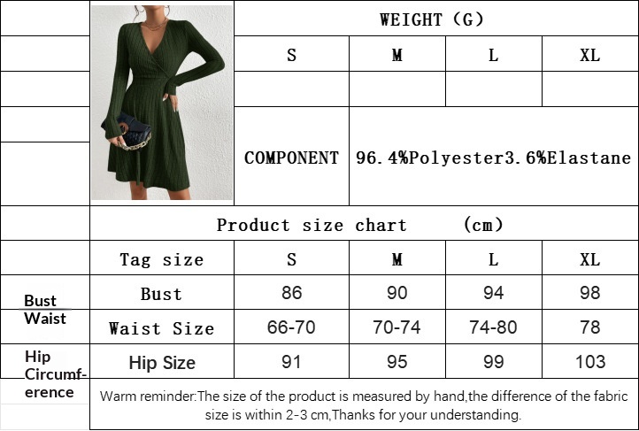 European And American Sexy Women's V-neck Waist-cinching Popular Fabric Ribbed Brushed Long-sleeve Dress