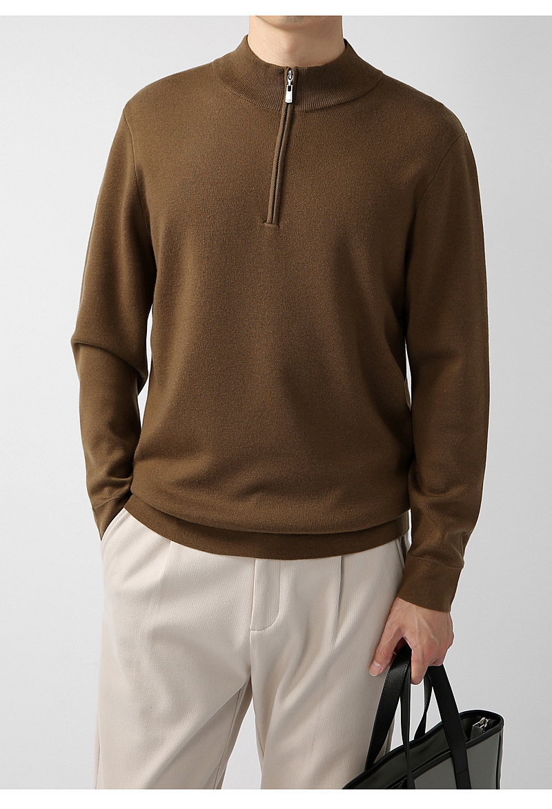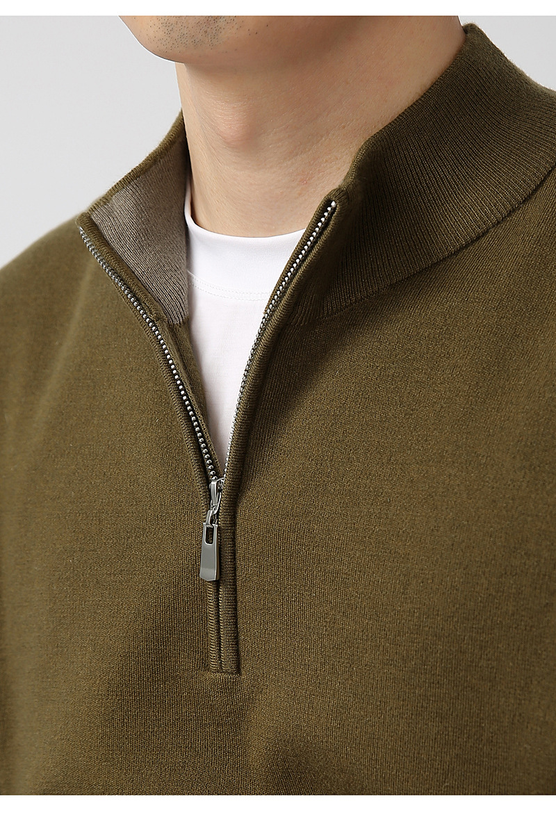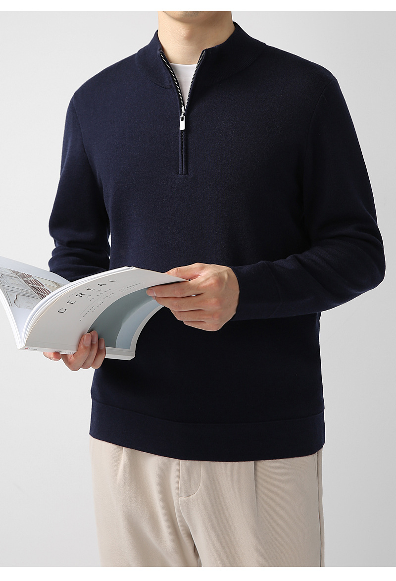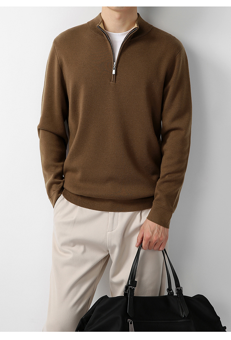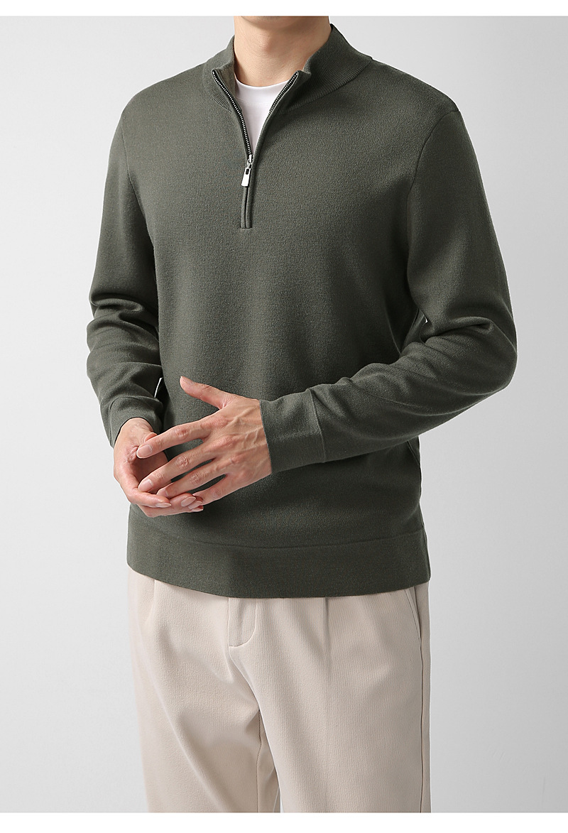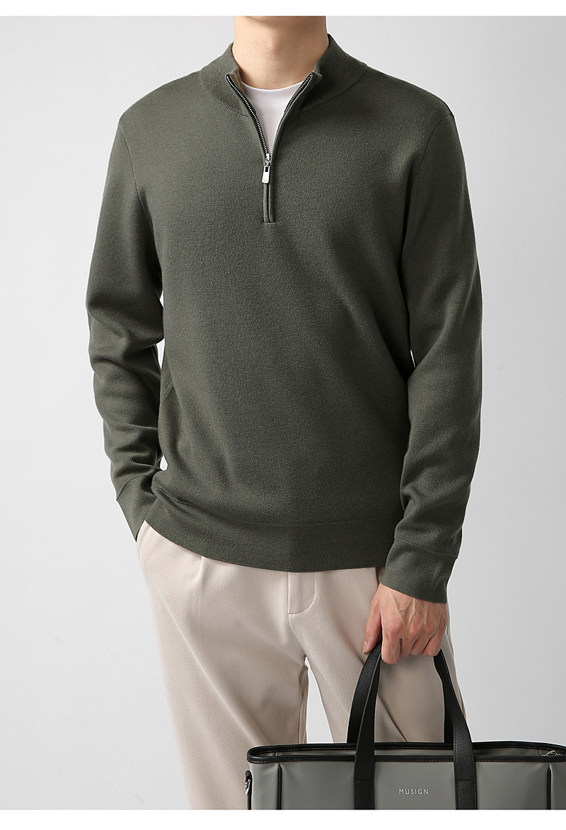 Men's Sweater Light Mature Simple Zip Stand Collar Machine Washable Merino Wool Knitwear