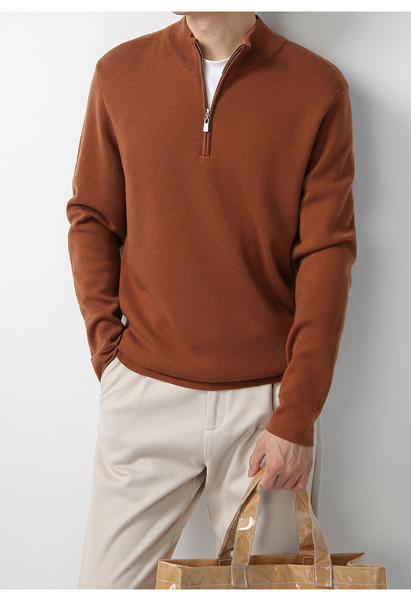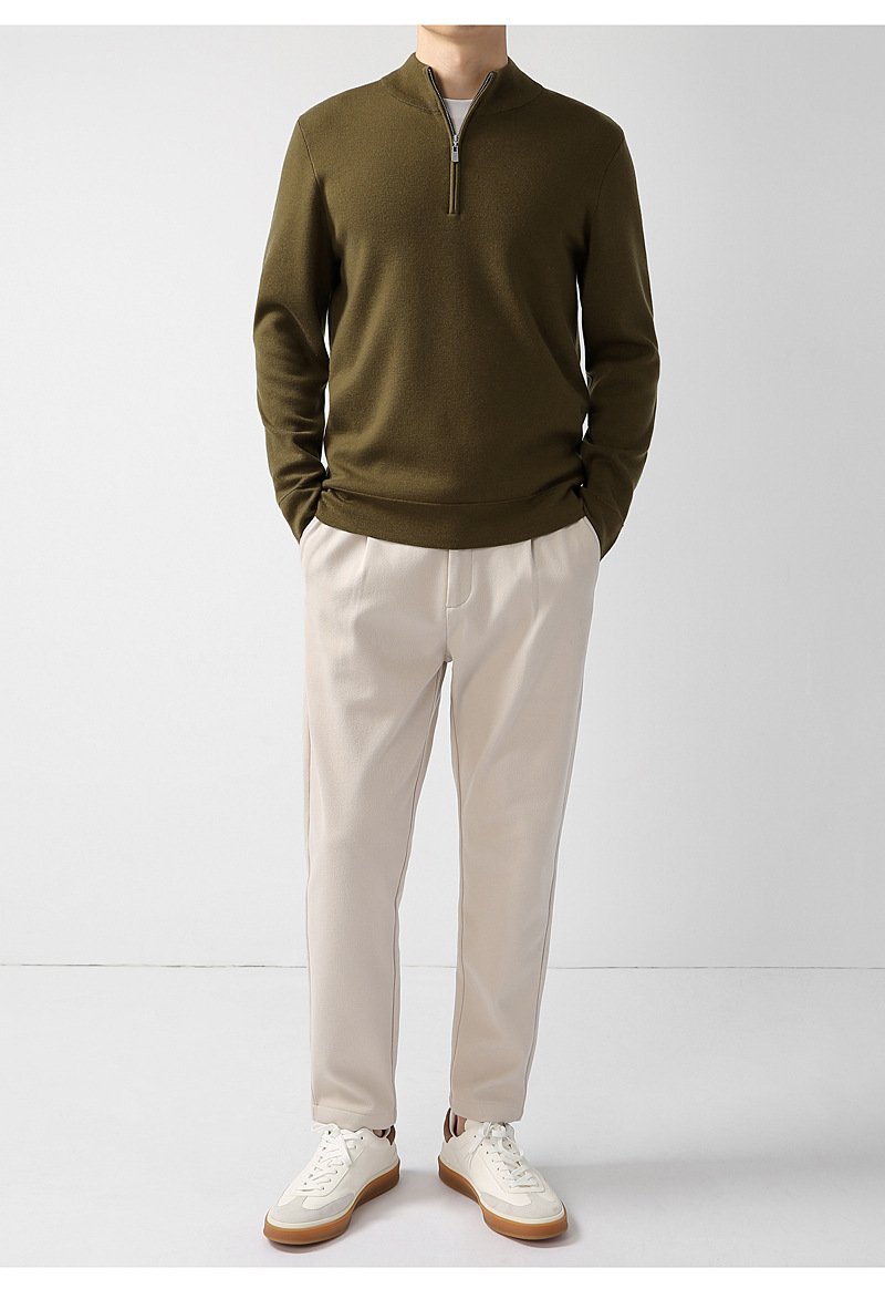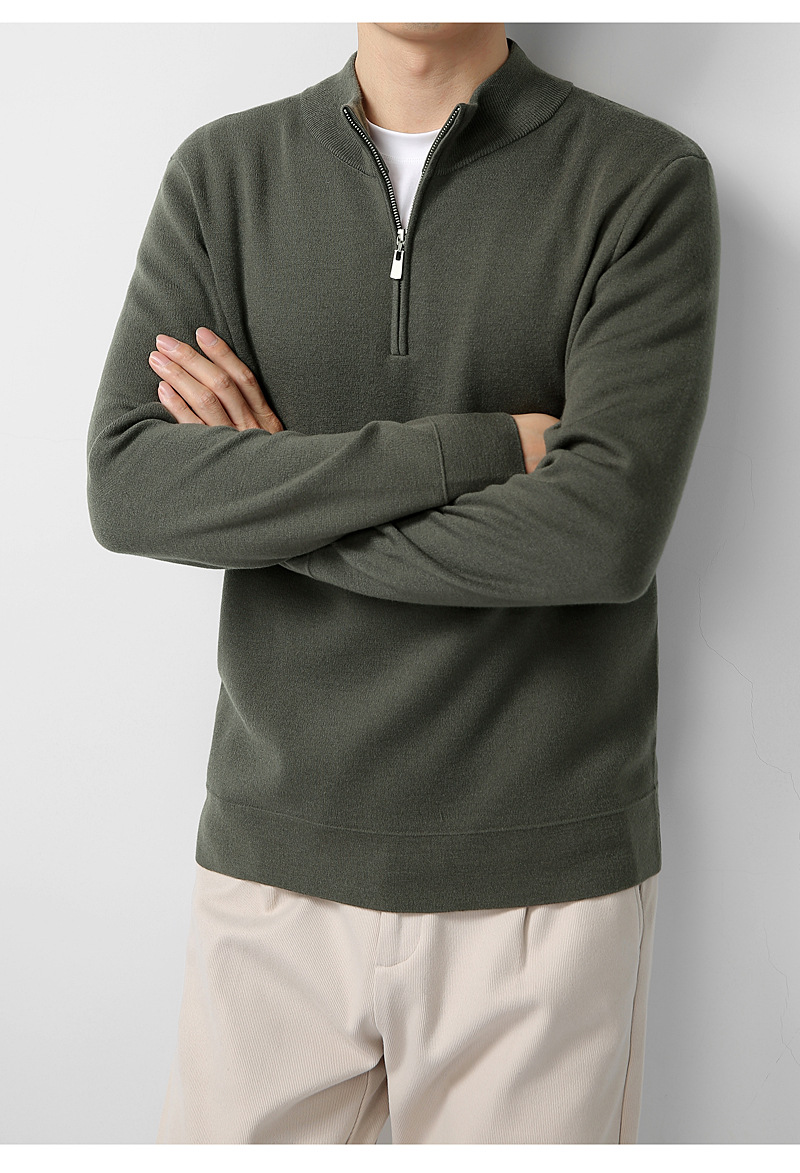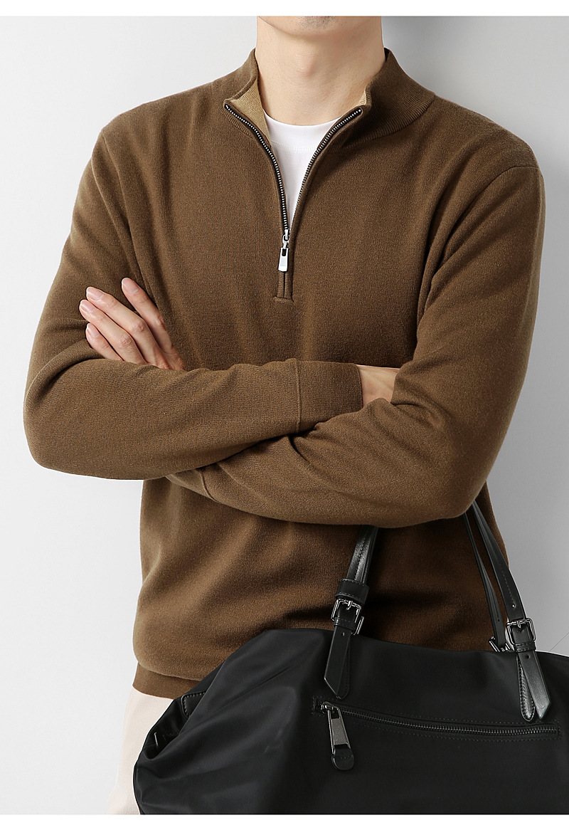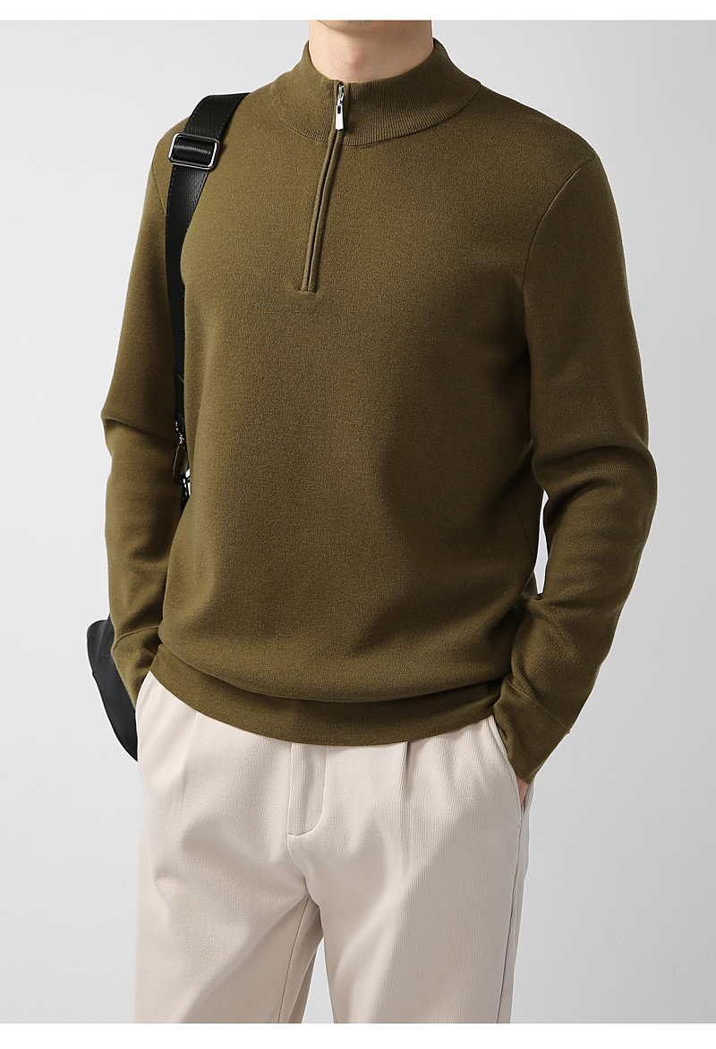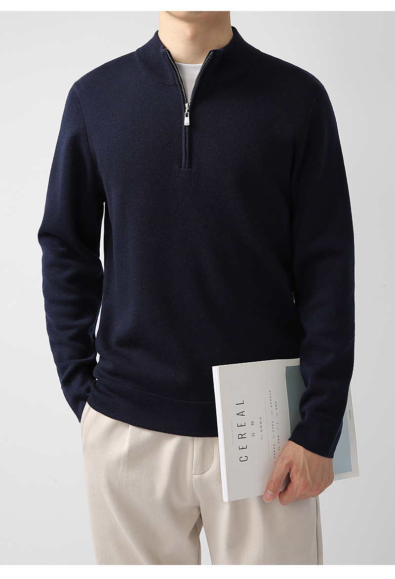 Men's Sweater Light Mature Simple Zip Stand Collar Machine Washable Merino Wool Knitwear