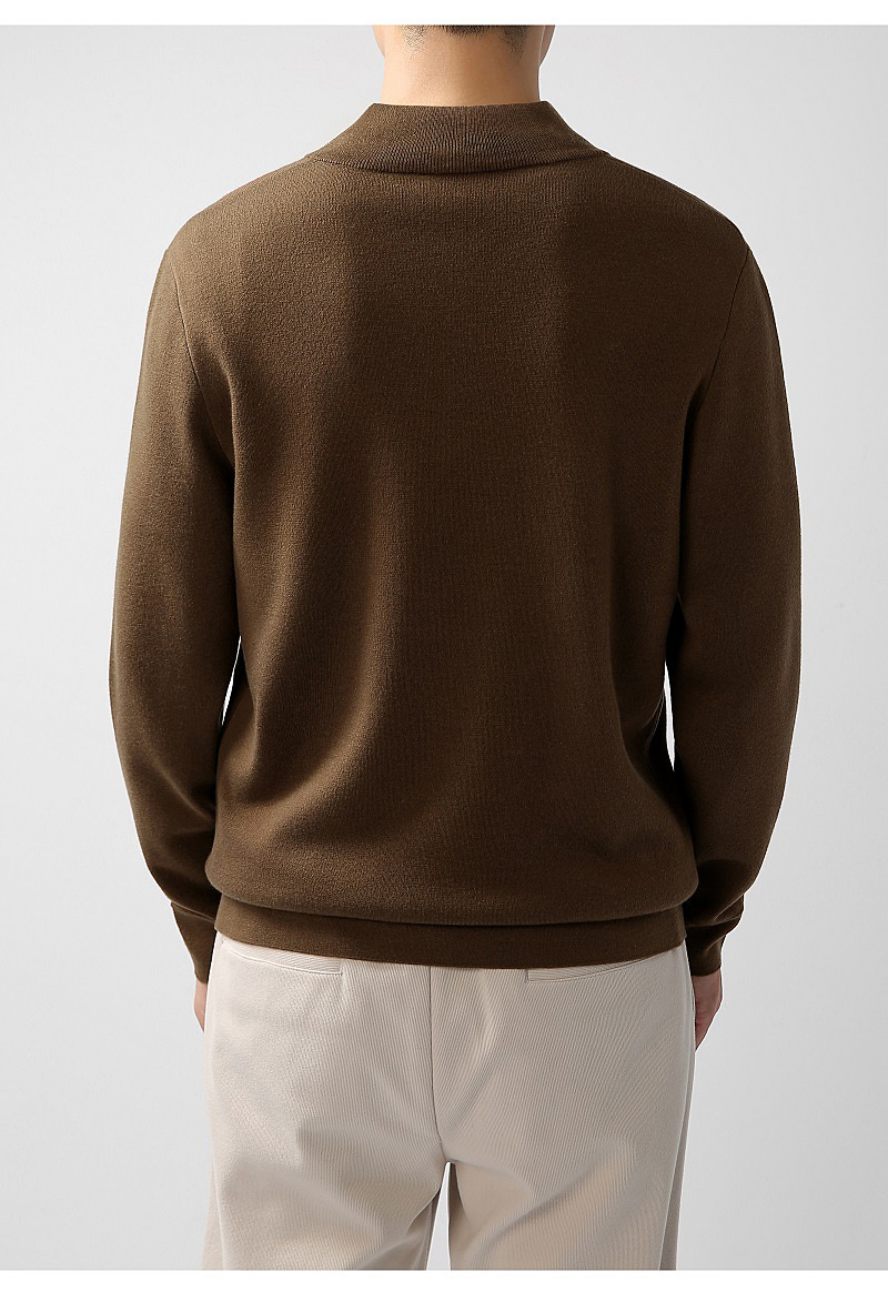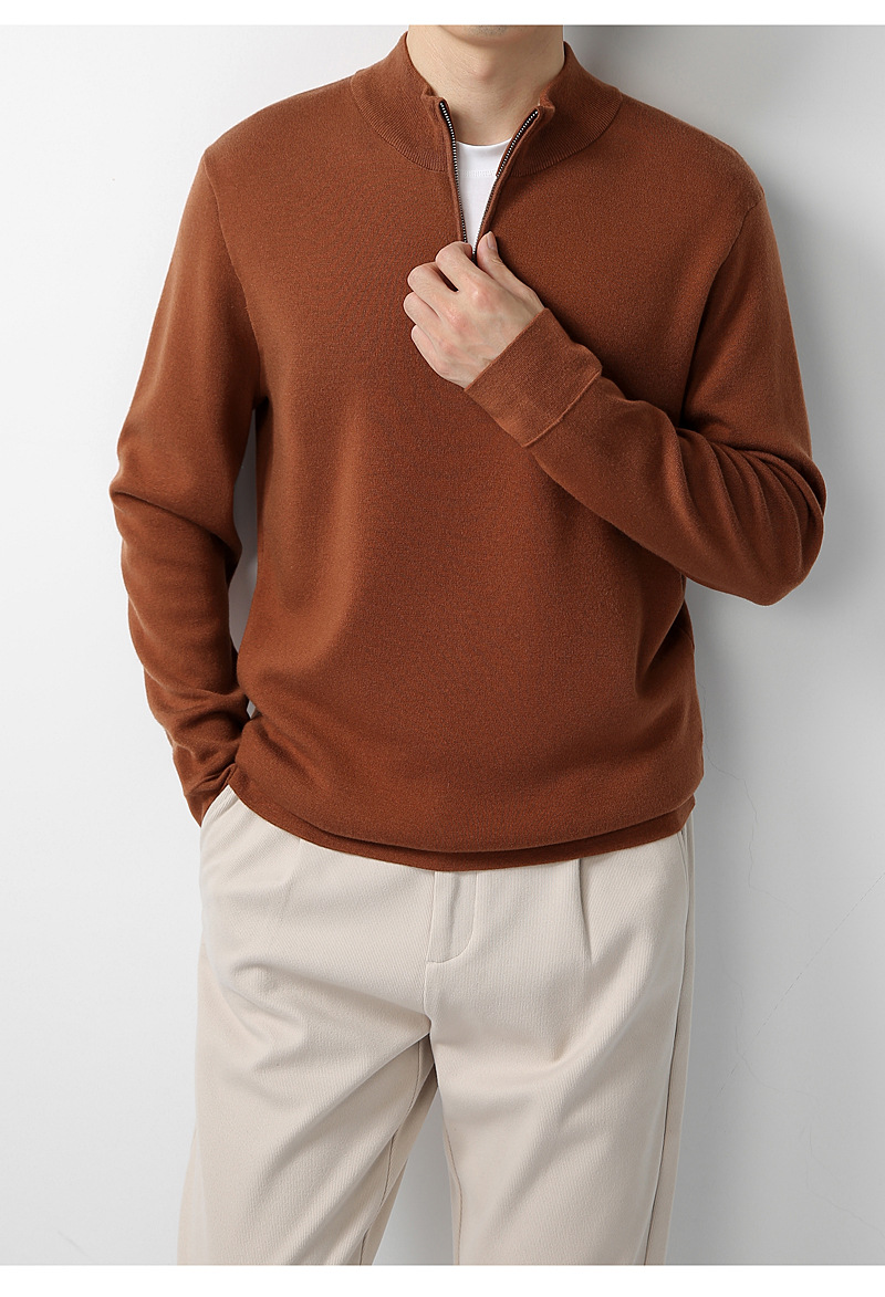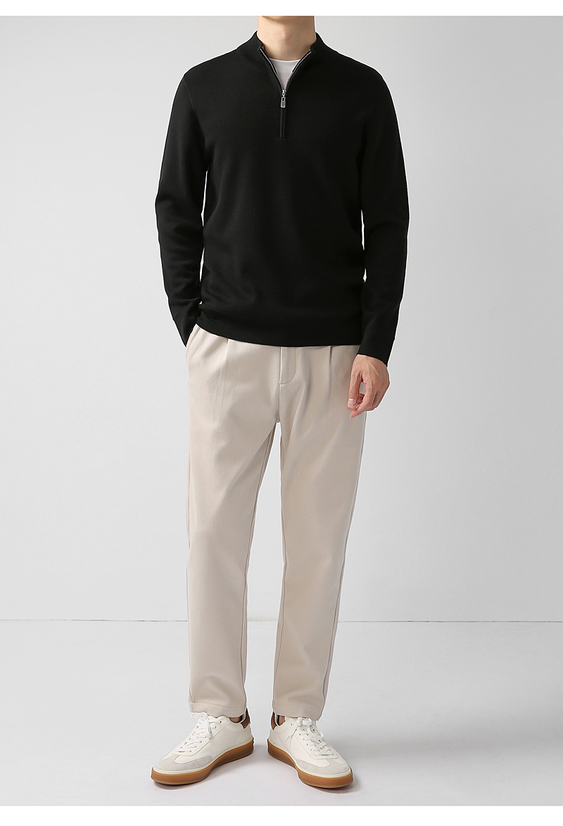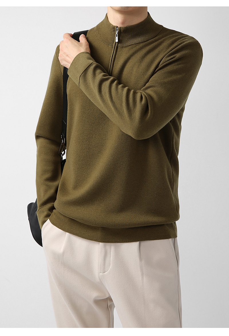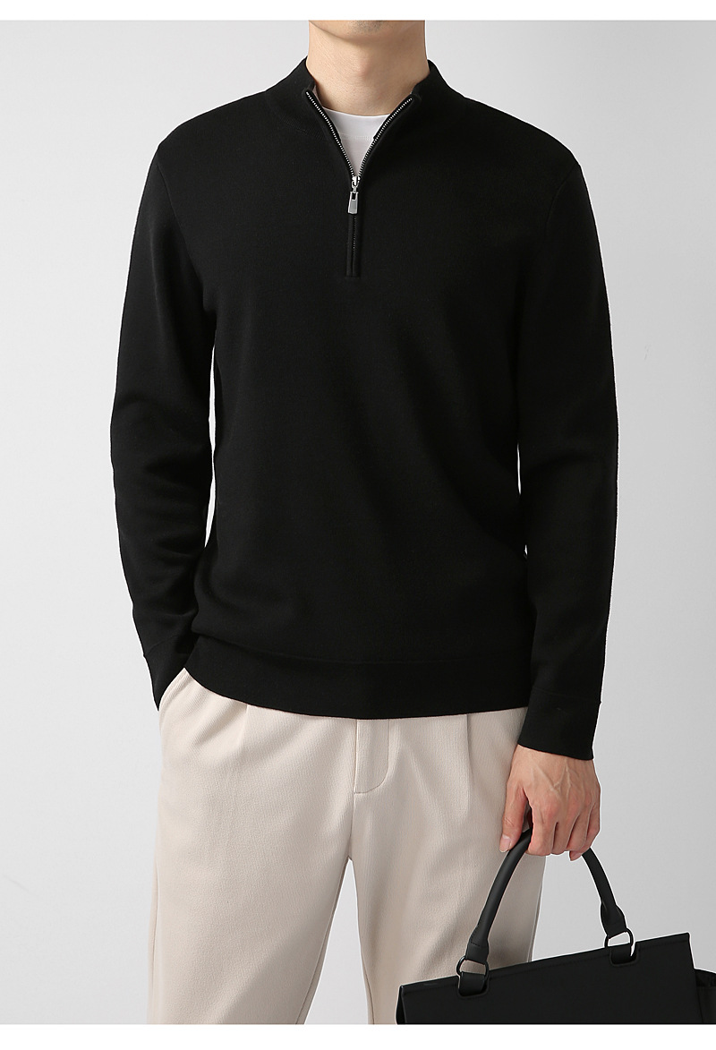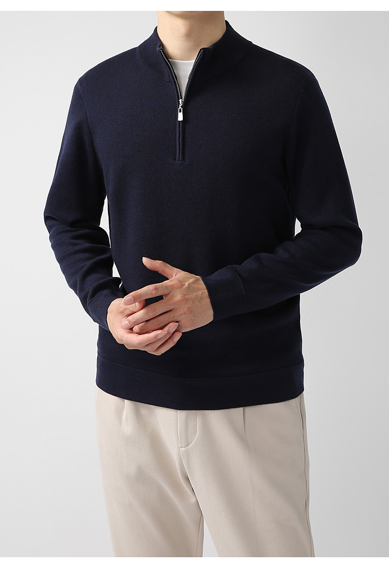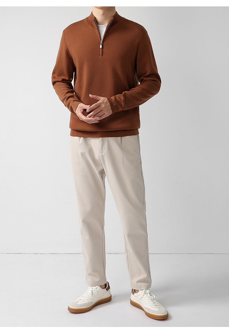 Men's Sweater Light Mature Simple Zip Stand Collar Machine Washable Merino Wool Knitwear