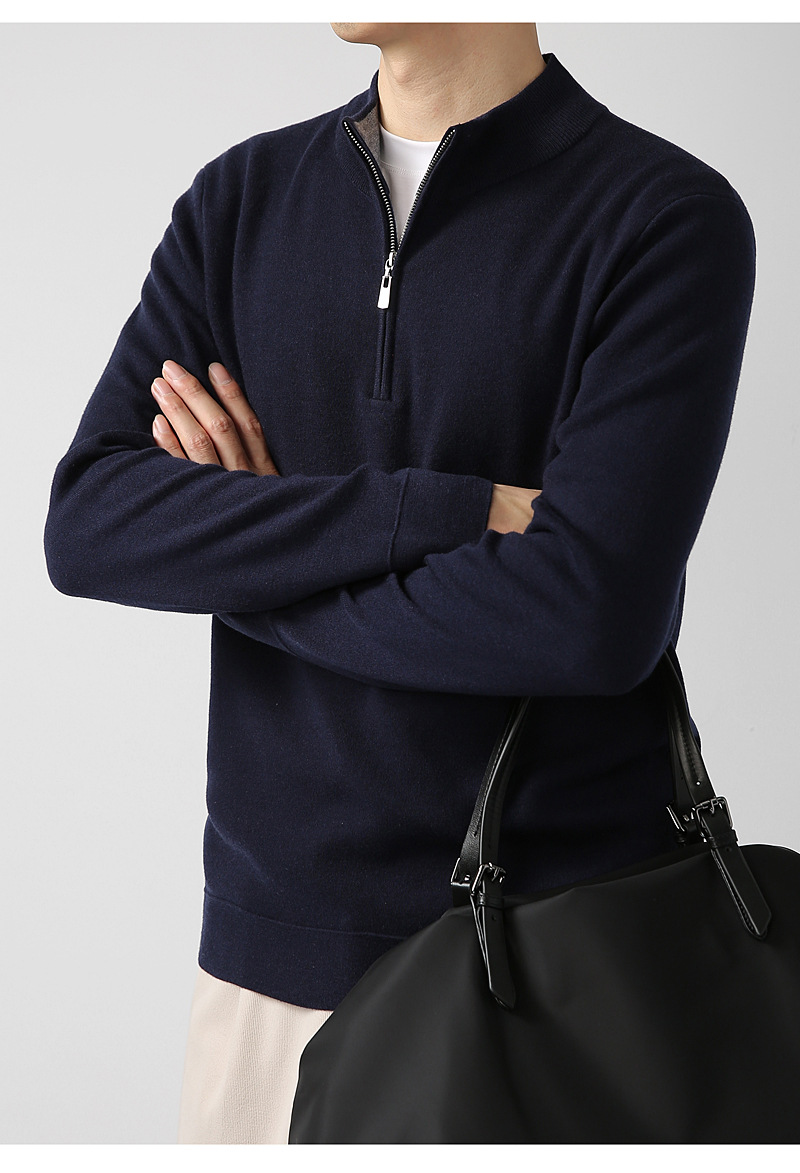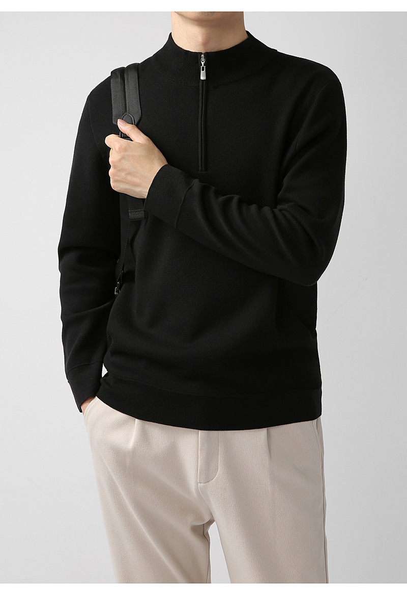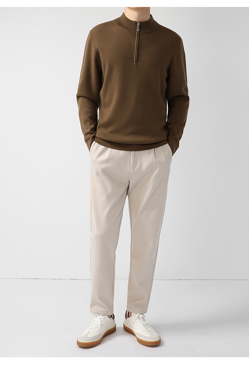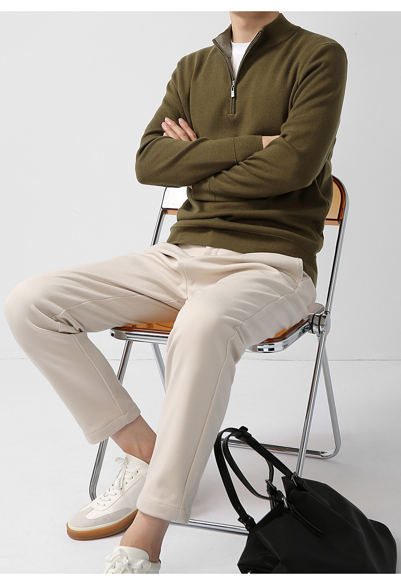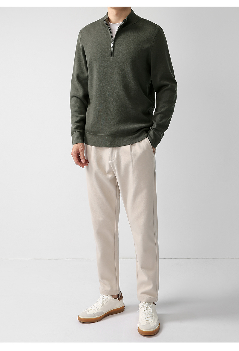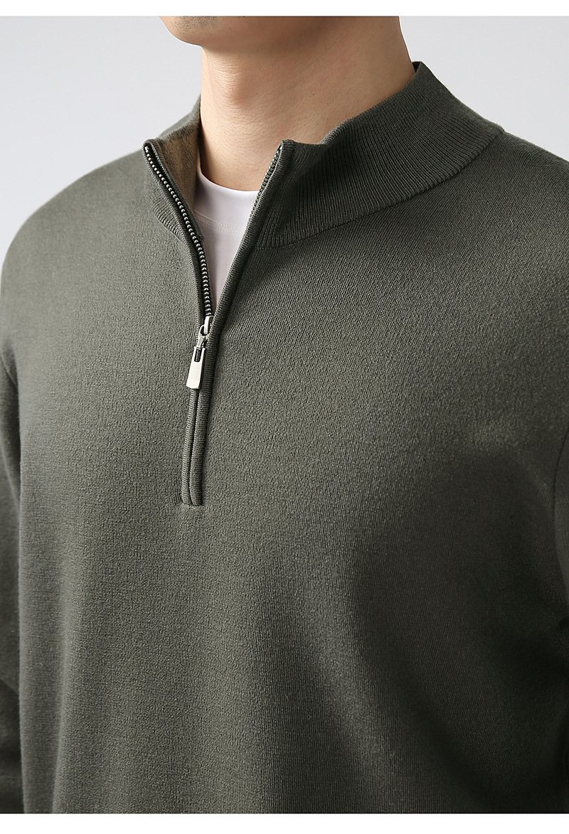Men's Sweater Light Mature Simple Zip Stand Collar Machine Washable Merino Wool Knitwear