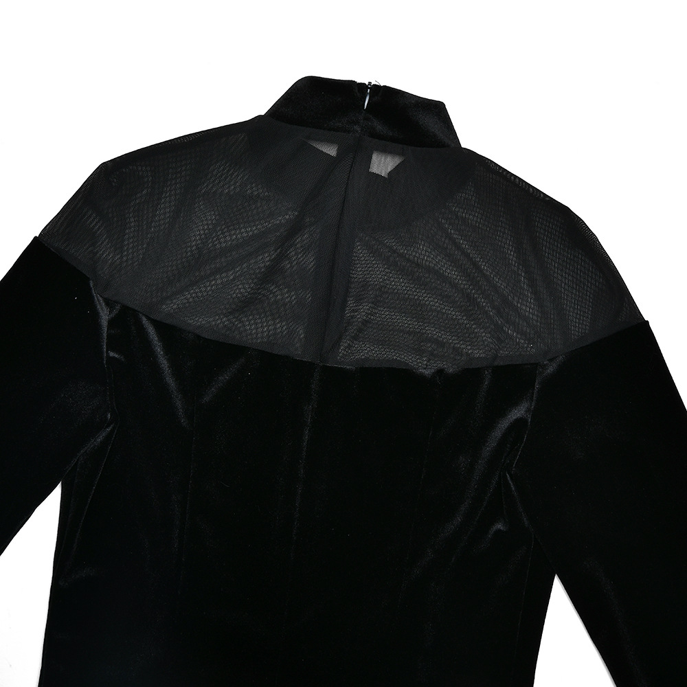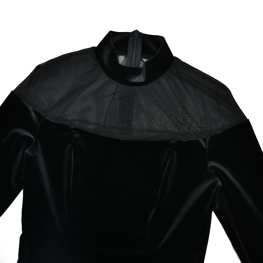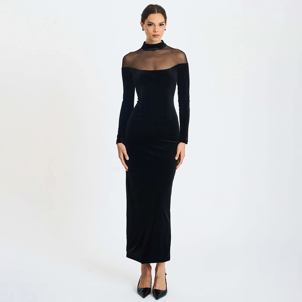Mesh See-through Spliced Sexy Tight Solid Color Dress
