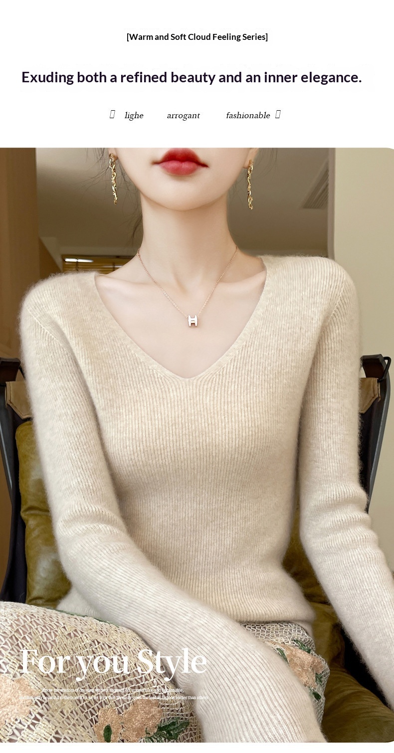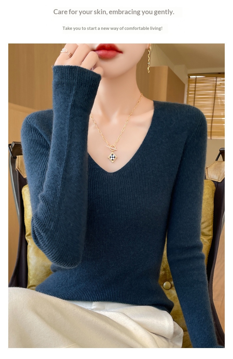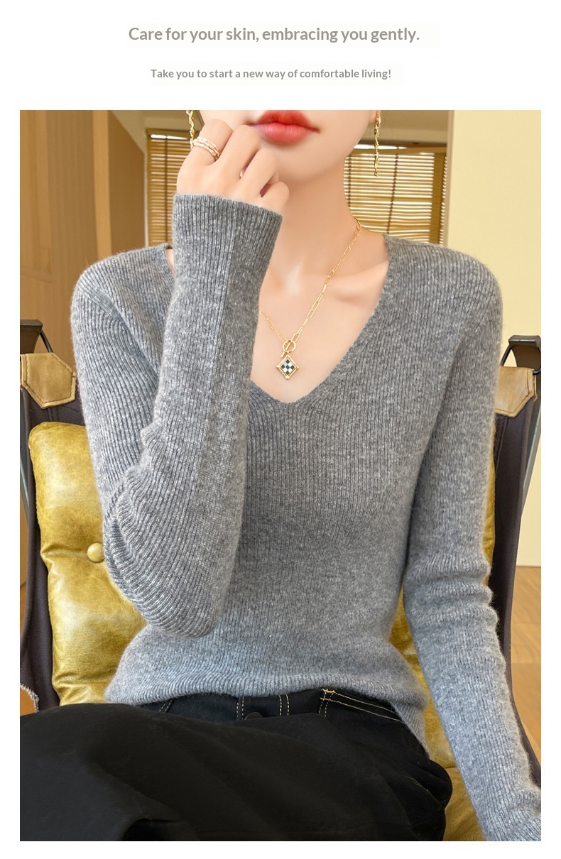 New V-neck Ribbed Slim-fitting Base Layer For Women, Slimming