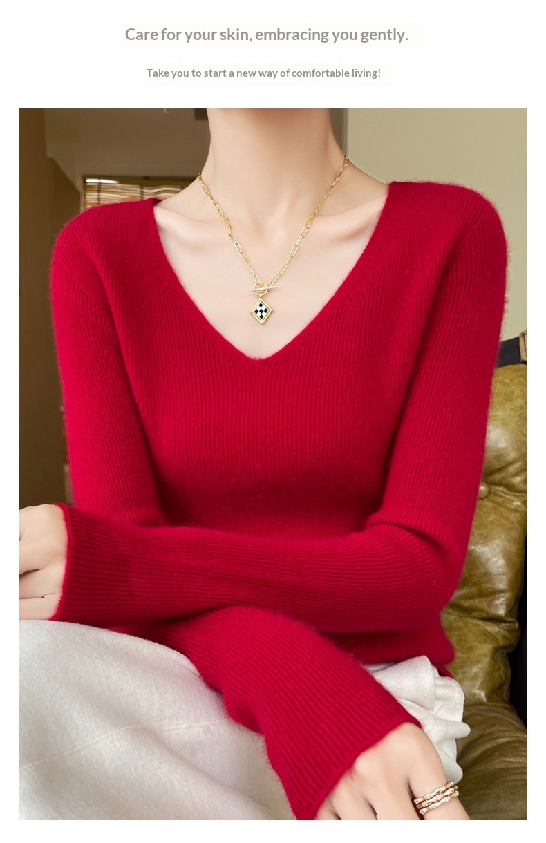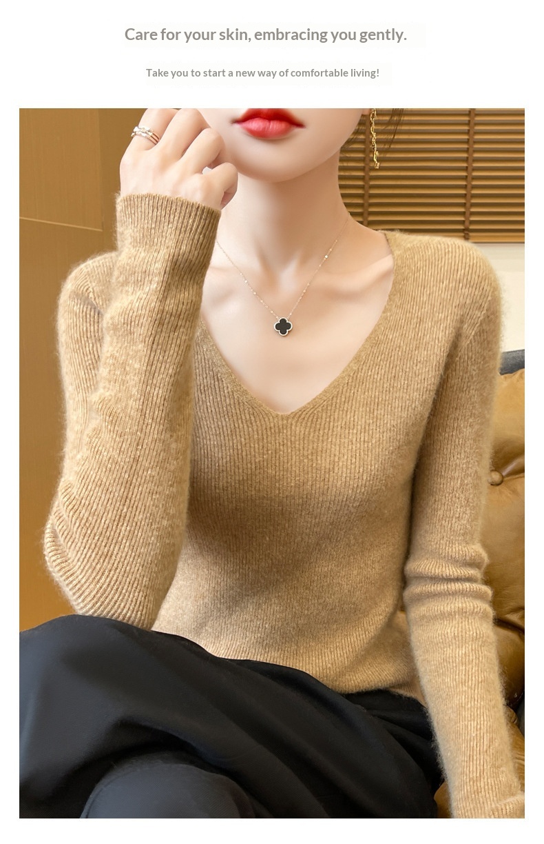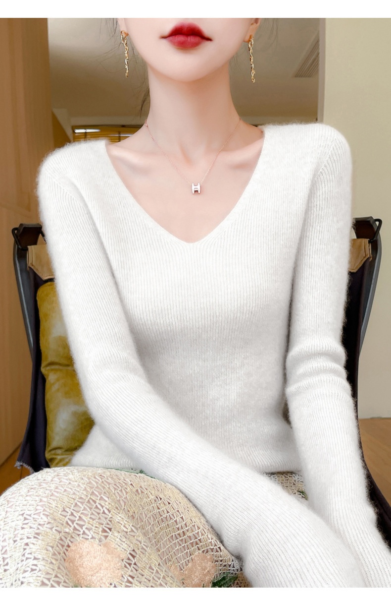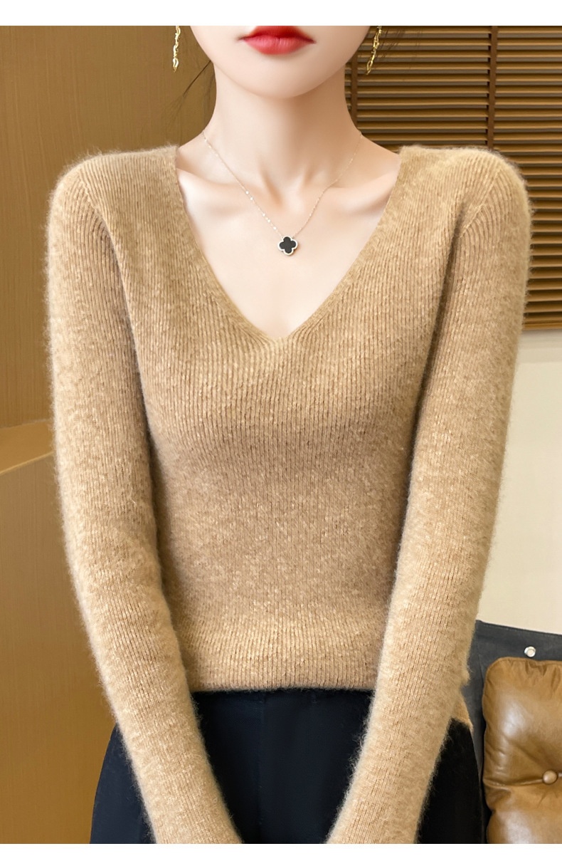 New V-neck Ribbed Slim-fitting Base Layer For Women, Slimming