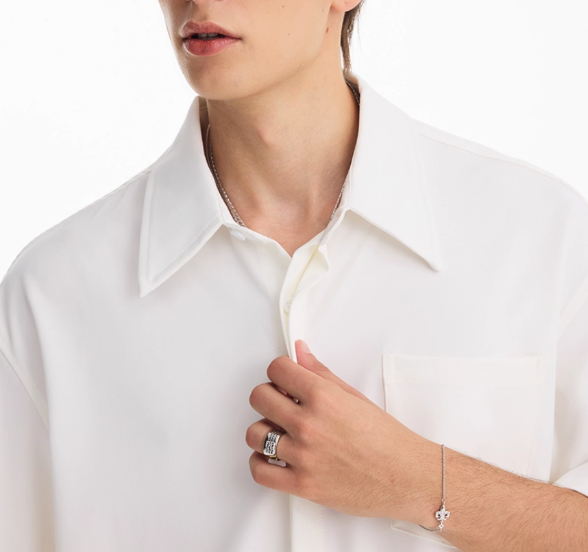 Summer American Retro Solid Color Short Sleeve Shirt Men
