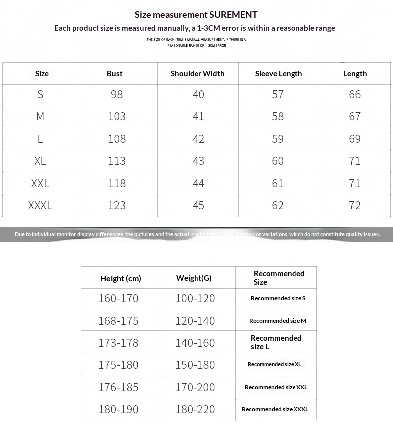 1. Asian sizes are 1 to 2 sizes smaller than European and American people. Choose the larger size if your size between two sizes. Please allow 2-3cm differences due to manual measurement. 2. Please check the size chart carefully before you buy the item, if you don't know how to choose size, please contact our customer service. 3.As you know, the different computers display colors differently, the color of the actual item may vary slightly from the following images.