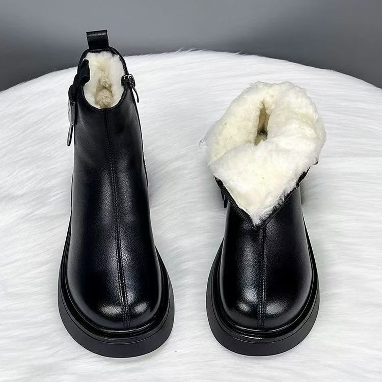 Winter Soft Leather Soft Sole Snow Boots For Women
